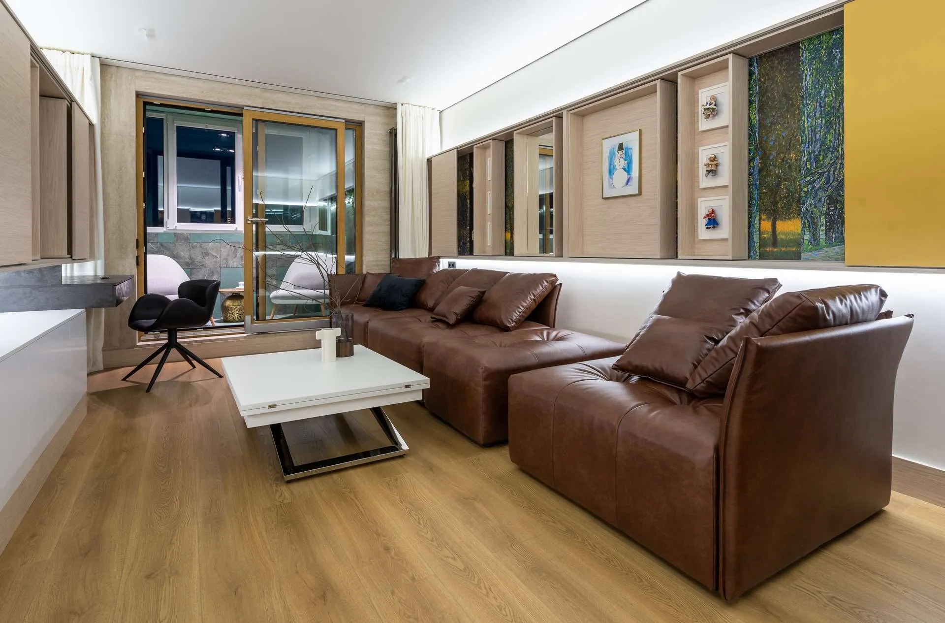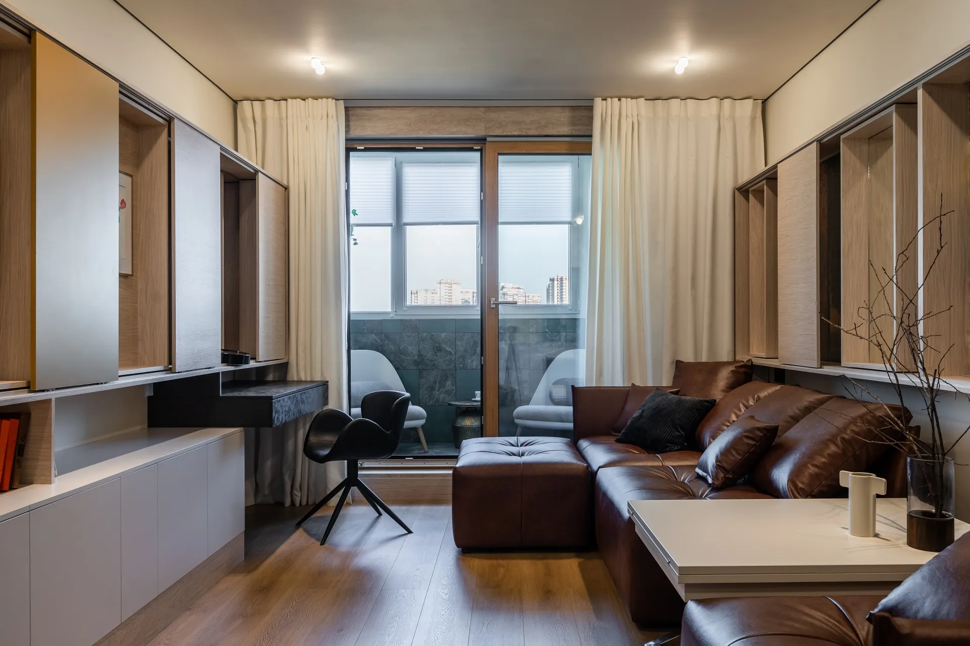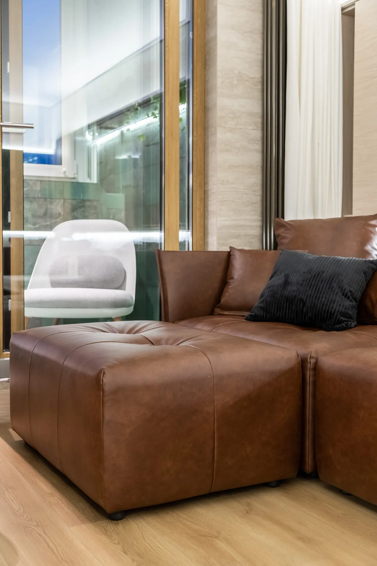 Подушки тоже в чехлах из экокожи, чтобы не отвлекали внимание от будущих экспонатов арт-галереи.