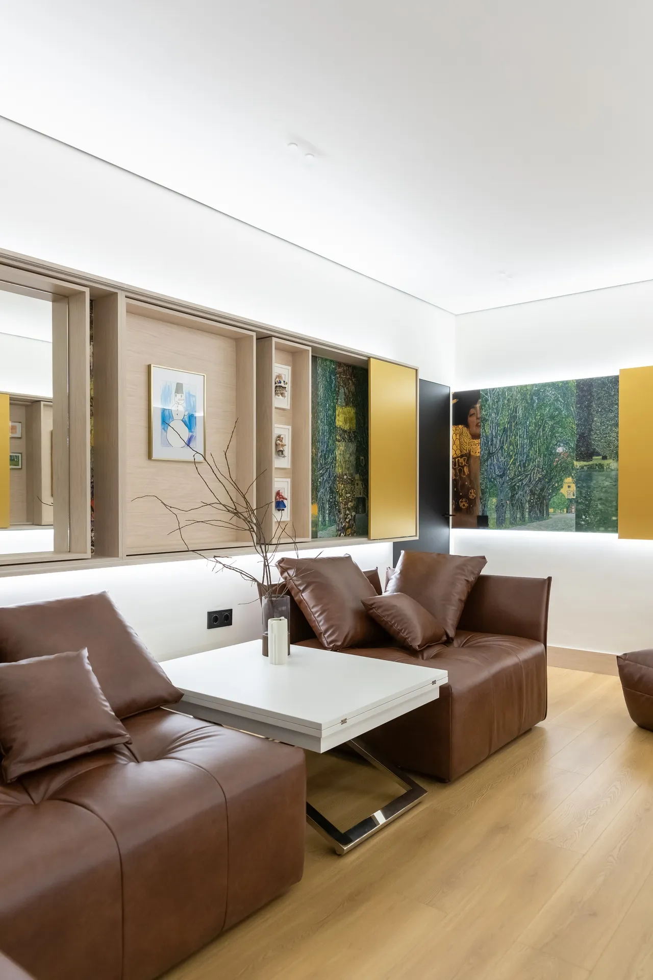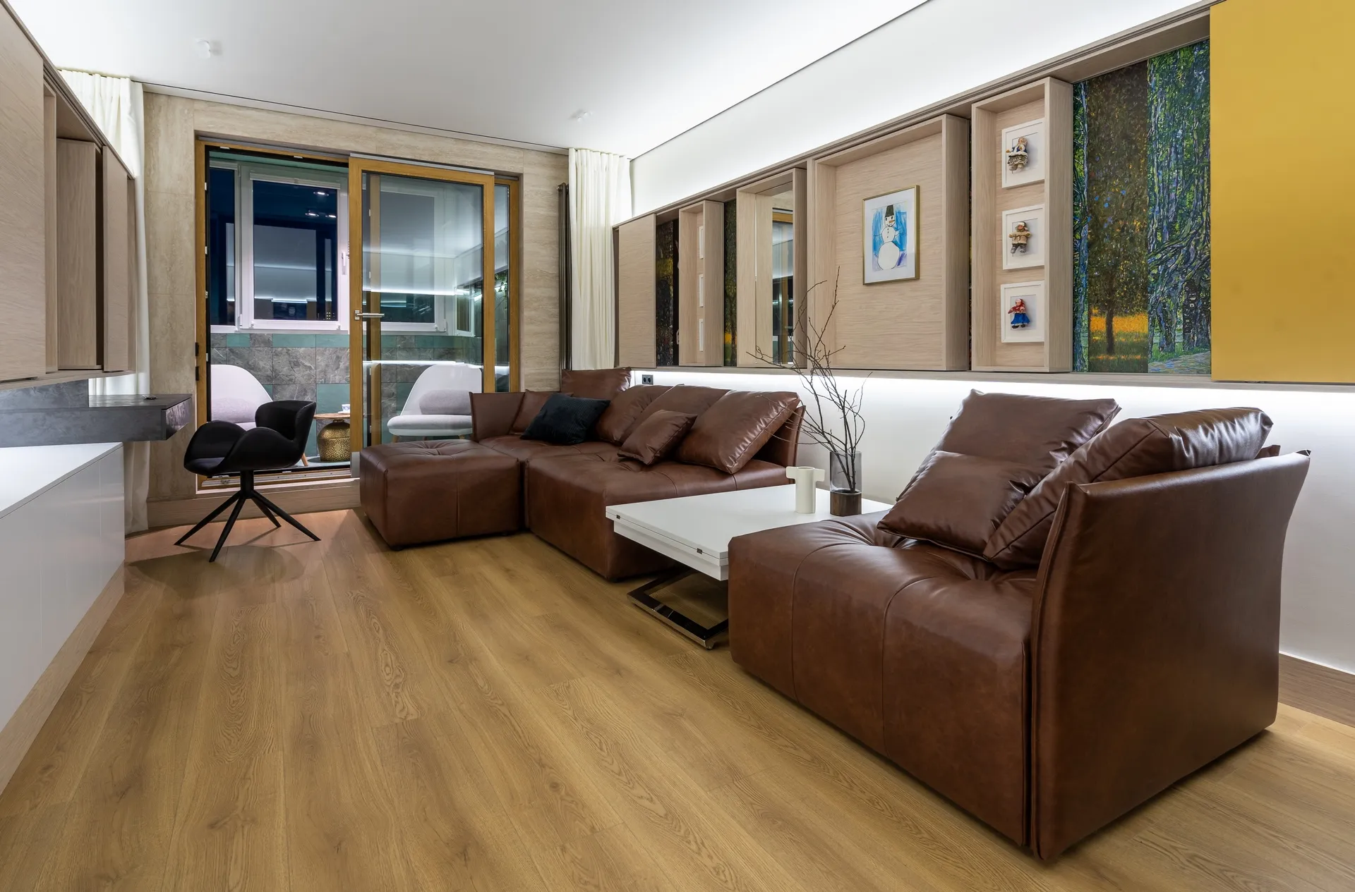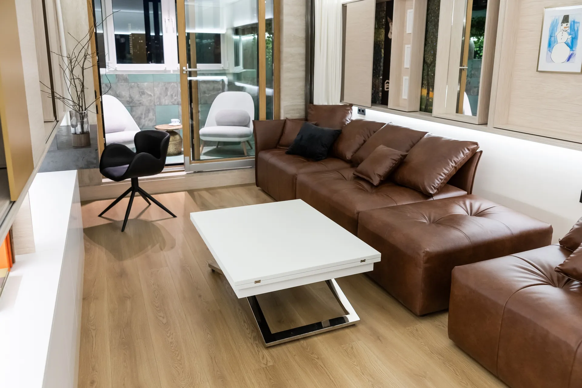 Подушки тоже в чехлах из экокожи, чтобы не отвлекали внимание от будущих экспонатов арт-галереи.