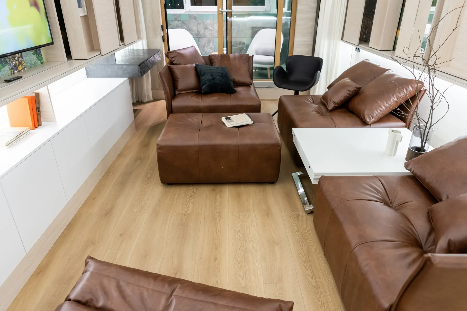 Модульный диван — это отличный вариант для тех, кому сложно подобрать монолитную конструкцию из-за сложной конфигурации помещения, а также тех, кто любит экспериментировать и часто делает перестановку. С его помощью можно легко изменить интерьер, превратив часть конструкции в пуф, кресло или софу.