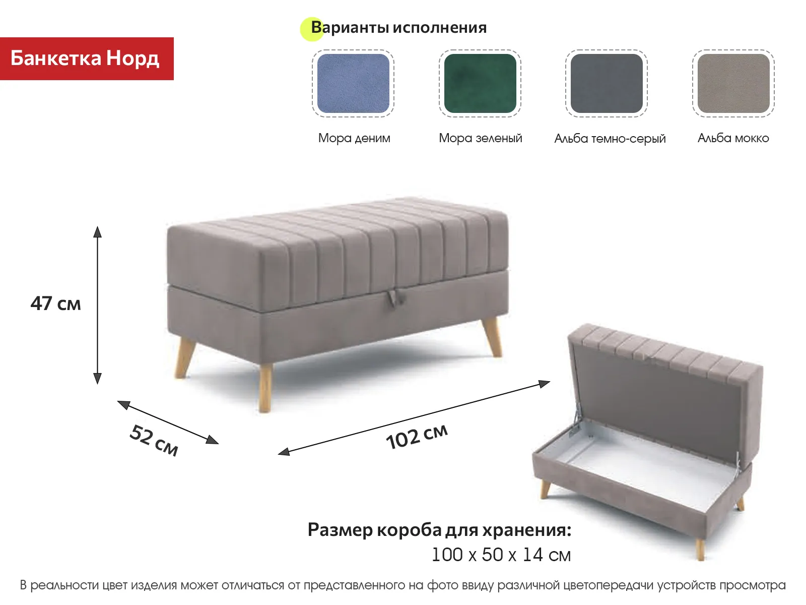 Декоративная отстрочка по высококачественному велюру добавляет приятный объем и украшает изделие. Опоры выполнены из массива берёзы, покрыты прозрачным лаком и имеют защитные войлочные наклейки. Банкетка хороша не только в гостиной, но и в гостиной, спальне, на кухне и в детской комнате. Максимальная нагрузка 110 кг.