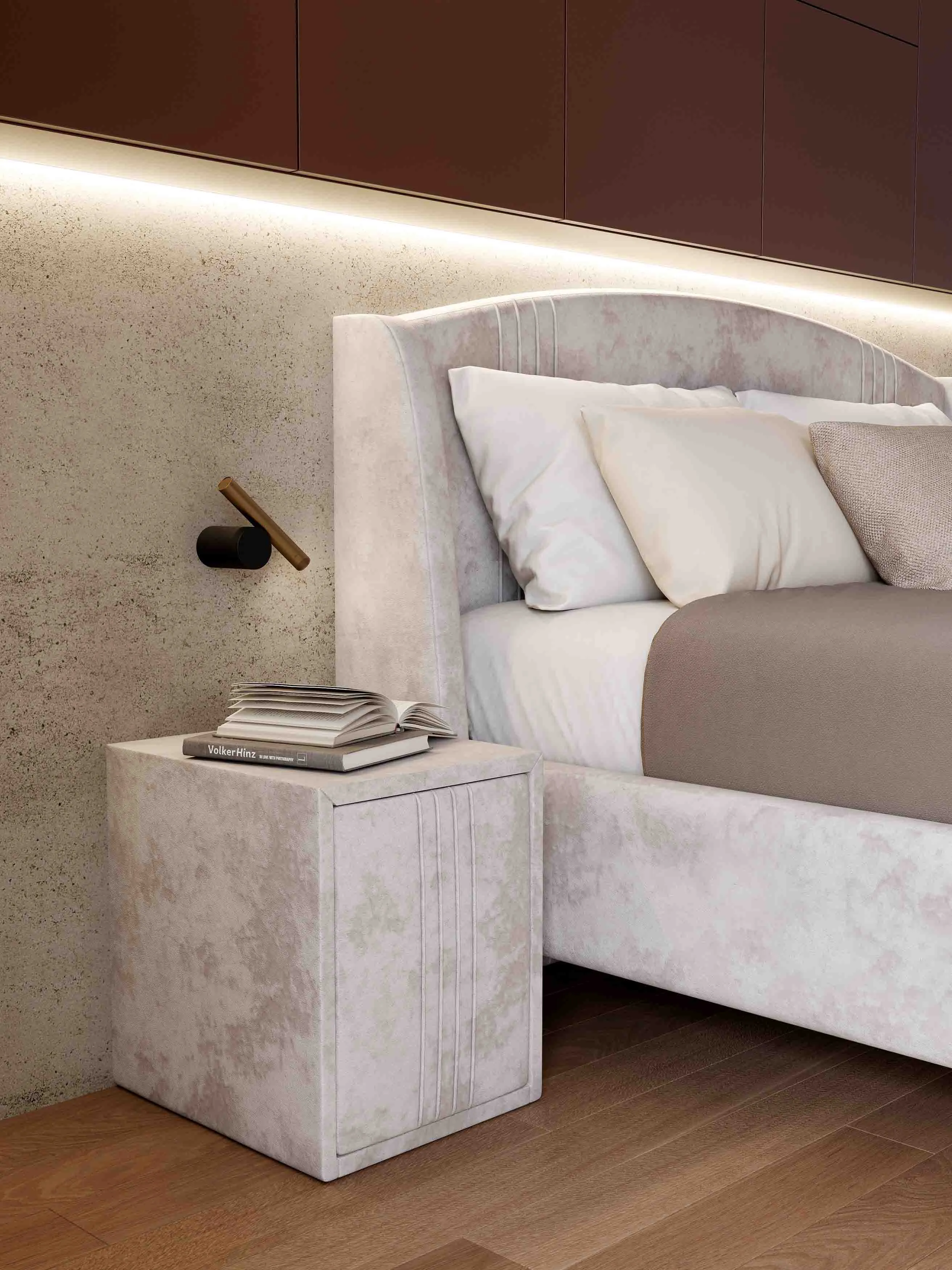Боковые декоративные элементы на изголовье, отстрочка на декоративных элементах и изголовье