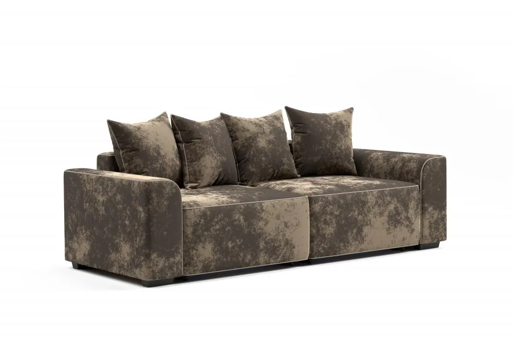 Вельветовая фактура ткани из трендовых 70-х в коллекции Vertical на подлокотниках дивана контрастирует со спокойной фактурой велюровой тканью самого изделия. Ткань не только роскошно выглядит, но еще и практична в эксплуатации, а также имеет отличные показатели износоустойчивости.