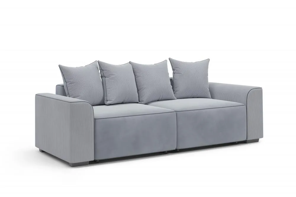 Вельветовая фактура ткани из трендовых 70-х в коллекции Vertical на подлокотниках дивана контрастирует со спокойной фактурой велюровой тканью самого изделия. Ткань не только роскошно выглядит, но еще и практична в эксплуатации, а также имеет отличные показатели износоустойчивости.