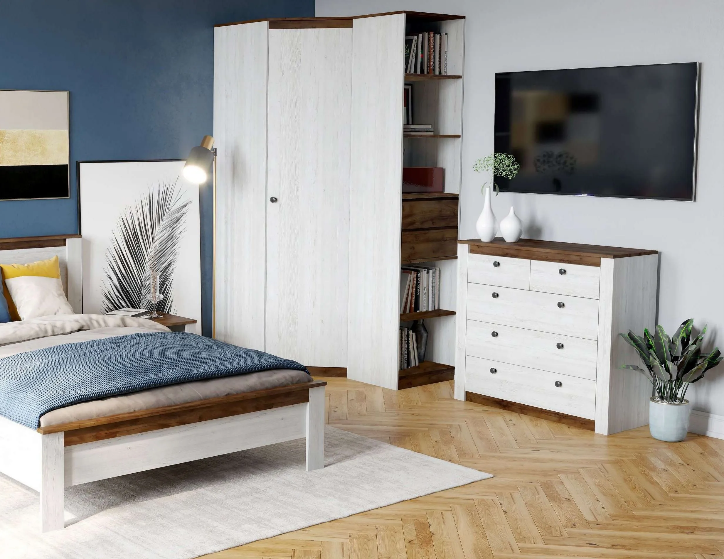 Стеллаж имеет пять открытых полок и два выдвижных ящика на шариковых направляющих, где вы можете разместить книги, аксессуары и другие предметы декора.
