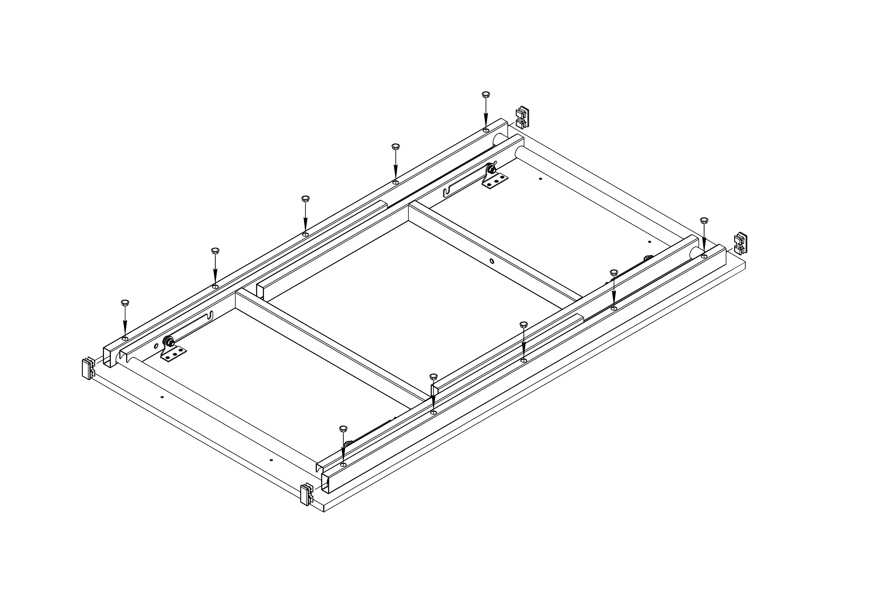 Раскладной стол "Брион 1" с прямоугольной столешницей.  Опорами служат две раскладных металлические рамы, соединённые между собой сборной / разборной поперечиной. Рамы фиксируются крючками и затягиваются  несъёмными винтами ("барашек"). Высота стола регулируется.