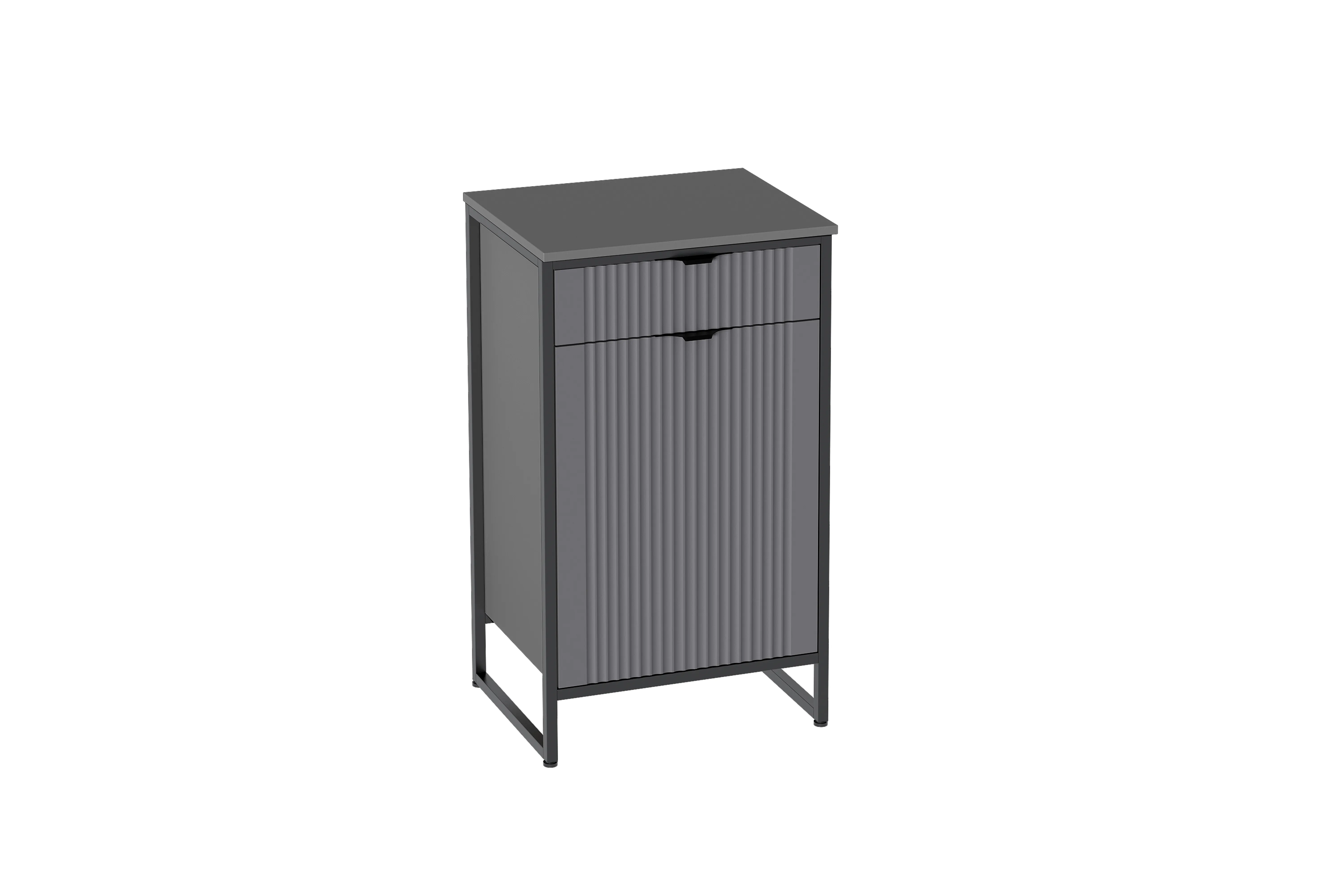 В верхней части тумбы "Нора" установлен выдвижной ящик на шариковых направляющих с доводчиками. Нижняя часть тумбы закрыта распашной дверью, за которой установлена съемная полка. Дверь может устанавливаться как на правую, так и на левую сторону и оснащена петлями с доводчиками.
