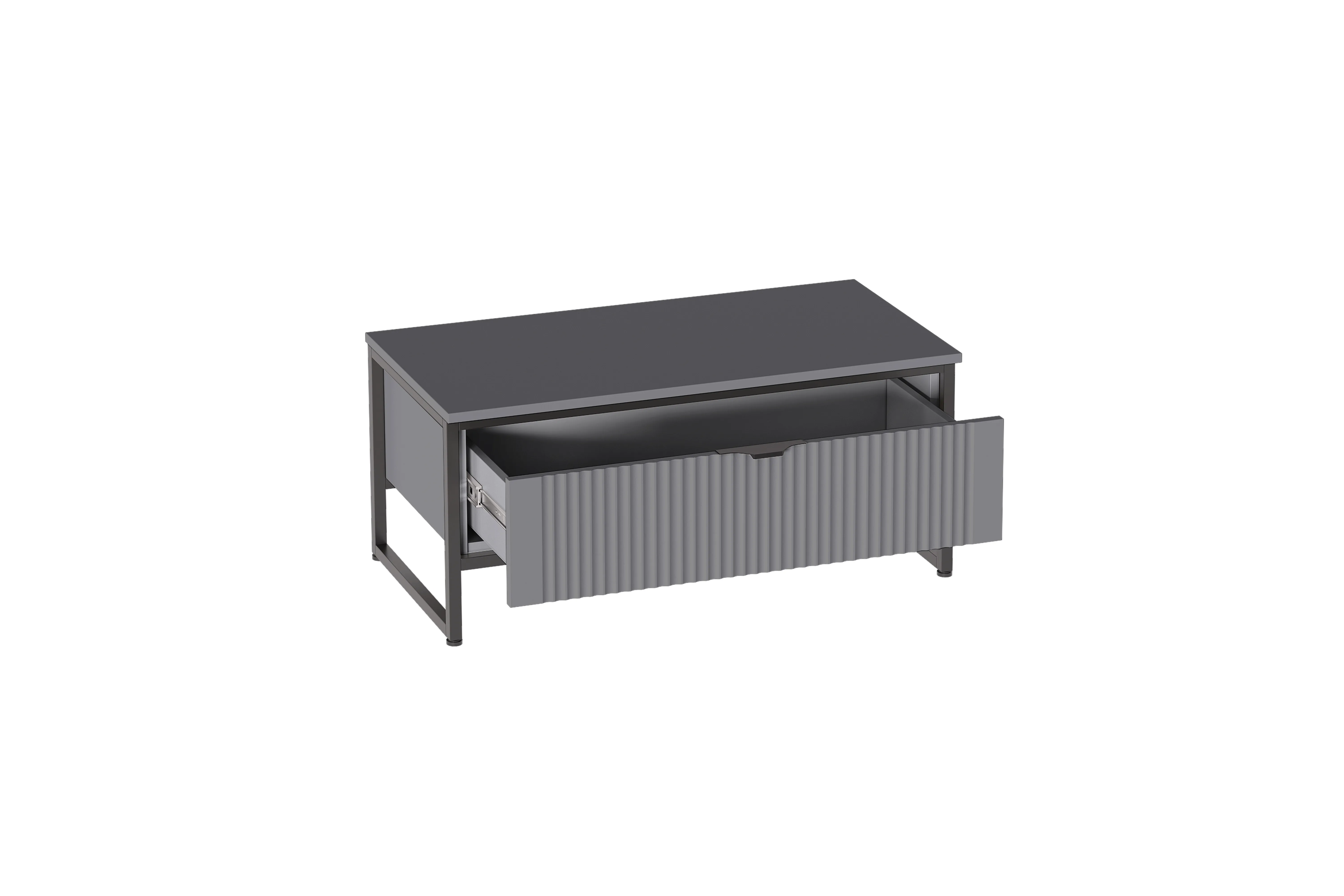 Тумба "Нора" состоит из несущего металлического каркаса и закрепленного к нему корпуса из ЛДСП , внутри которого установлен выдвижной ящик на шариковых направляющих с доводчиками.